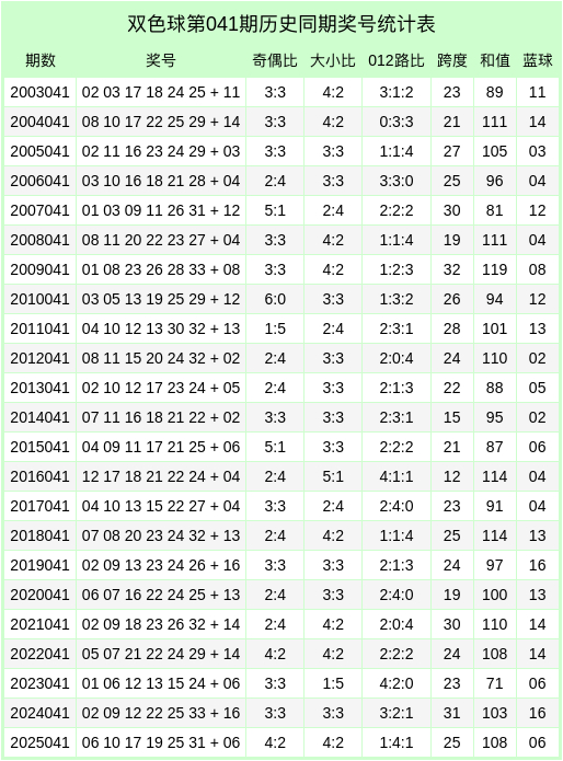 第2026041期双色球历史同期奖号分析